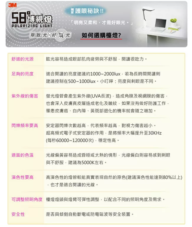 最足夠的照明面積-課本、作業、參考書一把照